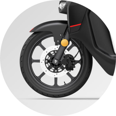 Predné a zadné kotúčové brzdy a kombinovaný brzdový systém (CBS) zaručujú bezpečné a účinné spomalenie v každej jazdnej situácii.
